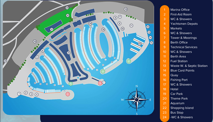 Die Stege der Yachties sind jedoch abgesperrt und räumlich etwas nach versetzt, man wird dort trotz des Trubels nicht von Menschenmassen überrannt. Das Servicegebäude wird im Westteil erst im Laufe der nächsten Monate noch gebaut. Auf der Landzunge im Ostteil wird bis 2017 das Hotel entstehen. Rechts daneben schließt das Winterlager mit etwa 200 Plätzen an. Dort ist auch der Service Bereich samt Travellift. Die großen Wellenbrecher bieten guten Schutz an den Liegeplätzen. Ins Altstadt-Zentrum von Istanbul ist es per Taxi etwas über eine Stunde, wer ab Bostanci in die Fähre nach Bakirköy umsteigt, hat gleich eine imposante Fahrt entlang der Waterfront von Istanbul zur Altstadt vor sich. Zum Flughafen Sabiha Gökcen sind es nur 20 Minuten. Direkt vor der Haustür des Hafens liegen die Prinzeninseln, ein beliebtes Wochenendziel der Istanbuler mit einigen Anlegern vor Restaurants und Ankerplätzen. Via Port will auch europäische Crews anlocken, bietet mit Beneteau-Vertretung und Service-Firmen viel für Eigner, die ihr Schiff auch einmal länger dort liegen lassen wollen.