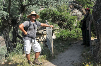 Nach einer weiteren halben Stunde durch schattenspendende Olivenhaine waren wir am Ziel, der Klosterruine Yediler. Yedi bedeutet sieben und soll einen Bezug auf die Legende der Siebenschläfer haben, die es allerdings auch bei Ephesus gibt. Vom Yediler-Kloster, das vier Kirchen hatte, ist nur noch die kleine Zitadelle einigermaßen intakt, deren gezackte Mauern sich auf einem kleinen Felsblock in einer Mulde erheben. Ansonsten sind nur Bruchstücke von Bogengängen und Restmauern zu sehen. Yediler war nach dem Stylos-Kloster die zweitgrößte Klosteranlage der Gegend. Besonders beeindruckt waren wir vom kleinen Gefängnis des Klosters (die Mönche, die Mönche!) und von den gefährlich tiefen Zisternen, aus denen kein Entrinnen ist, falls man da mal hinein fallen sollte.