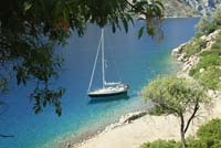 Ziel der nächsten Etappe ist "Sailors Paradise", eine Bucht im Hisarönü Golf. Der Name ist nicht übertrieben: eine verwunschener Platz ohne Zugang von Land, ein einfacher Holzsteg, ein kleines Restaurant und unheimlich nette Leute, die sich freuen, dass jemand kommt. "Yavas Yavas" wird am Steg festgemacht und Hildegard entdeckt gleich beim ersten Landgang eine Schildkröte, drei Kekos und den Esel, der zur Kneipe gehört. Mit wildem Oregano, frischem Thymian und unglaublich duftendem Salbei in den Händen kommen Anna und Hildegard zum Schiff zurück. Mit dem Herzen sprechen. Alte Menschen werden in der türkischen Gesellschaft besonders respektiert. Die Hochachtung der türkischen Wirtsleute für die 85-jährige Seglerin ist groß. Hildegards Versuch, die drei vom Skipper gelernten türkischen Wörter anzuwenden, öffnet Herzen. Natürlich sind perfekte Sprachkenntnisse nicht wichtig. Ohne Antoine de Saint Exupery zu kennen wird hier mit dem Herzen gesprochen. Freude am Kontakt mit anderen Menschen bringt Hildegard von Haus aus reichlich mit. "Melek" wird sie bald vom Koch genannt; melek ist ein Wesen zwischen Gott und Mensch, ein Engel. Dieser Name bleibt Hildegard bis zum Ende des Törns. Frisches Gemüse, Tomaten, Gurken und Salat aus dem Garten hinter der Kneipe, duftendes, noch warmes Brot, in der Früh gefangener Fisch - ein Festessen unter freiem Himmel beendet den ersten Segeltag. Melek, Anna und Skipper Wolfgang fallen müde und glücklich in ihre Kojen. Fazit: Das Bordleben ist eigentlich ziemlich unkompliziert, das Essen ein Traum. Hildegard schläft so gut wie lange nicht und erwacht am nächsten Morgen mit neuem Tatendrang. Der Skipper kennt sich an der türkischen Küste so gut aus wie in seiner kleinen Kombüse. So können die Mitsegler jeden Tag neu beschließen, was sie tun möchten. Einzig bei Sicherheitsfragen liegt die Entscheidung allein bei ihm. Hildegard und Anna streifen durch quirlige Bazare, lassen sich von der Vielfalt der türkischen Küche verwöhnen und tauchen immer wieder in das klare und saubere Wasser der Ägäis ein.